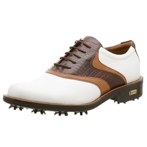 Rule the course wearing the fully water-resistant leather World Class Saddle GTX golf shoe from Ecco. This handsome golf shoe has a padded collar and tongue, five eyelet lace up closure, cushioned insole, a polyurethane midsole for superior flexible stability and support, and a rubber outsole. The World Class Saddle GTX is fitted with the Champ ceramic spikes from MacNeill for superb grip. Comes with an additional set of Eclipse cleats from Trisport.